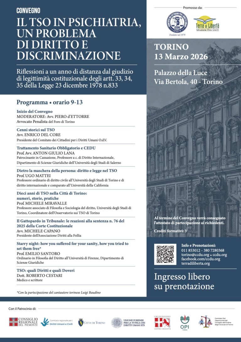Convegno “Il TSO in psichiatria: un problema di Diritto e Discriminazione”
